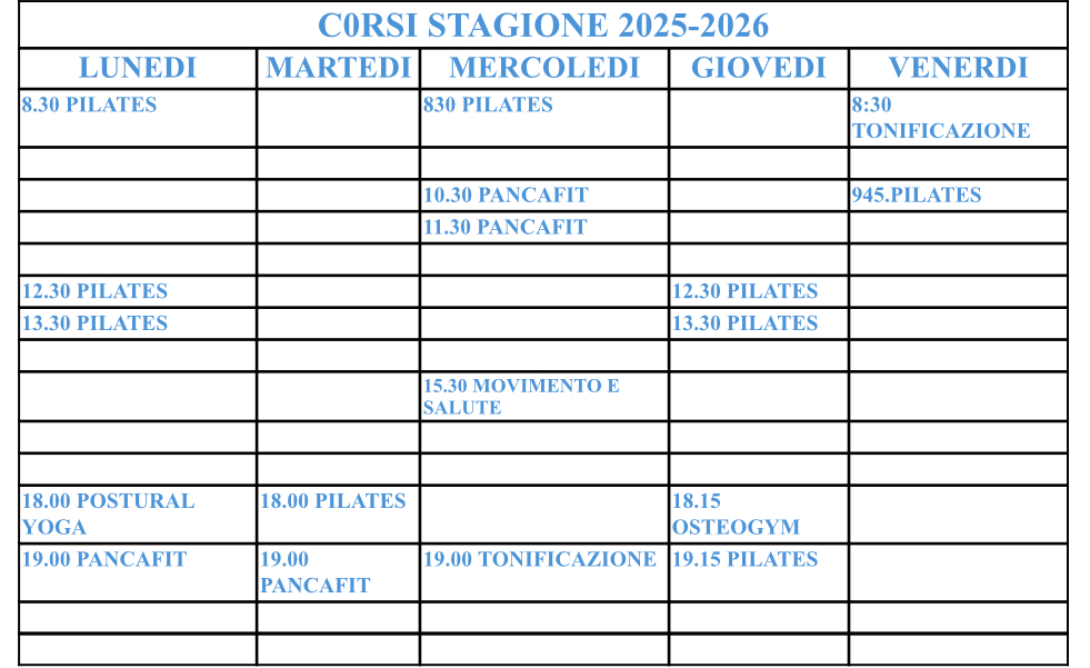 Lezioni in piccoli gruppi, flessibili e sempre personalizzate per garantire, in sicurezza, un’attività fisica mirata alle problematiche di ciascun partecipante.